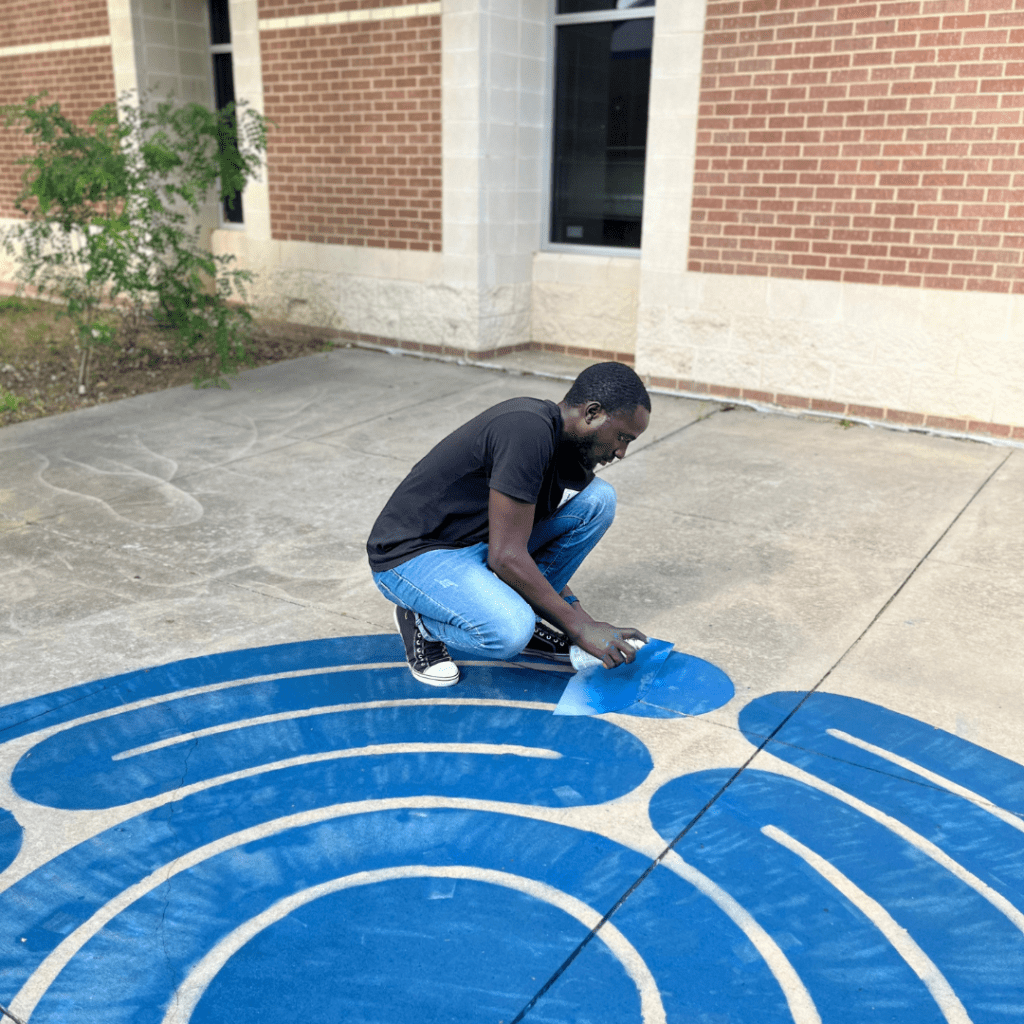 In April 2023, I painted a sensory maze path for Malvern Elementary School in McKinney, TX. The path helps students work off their excess energy or develop their motor skills.